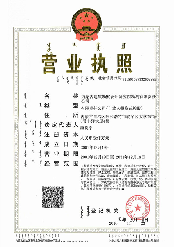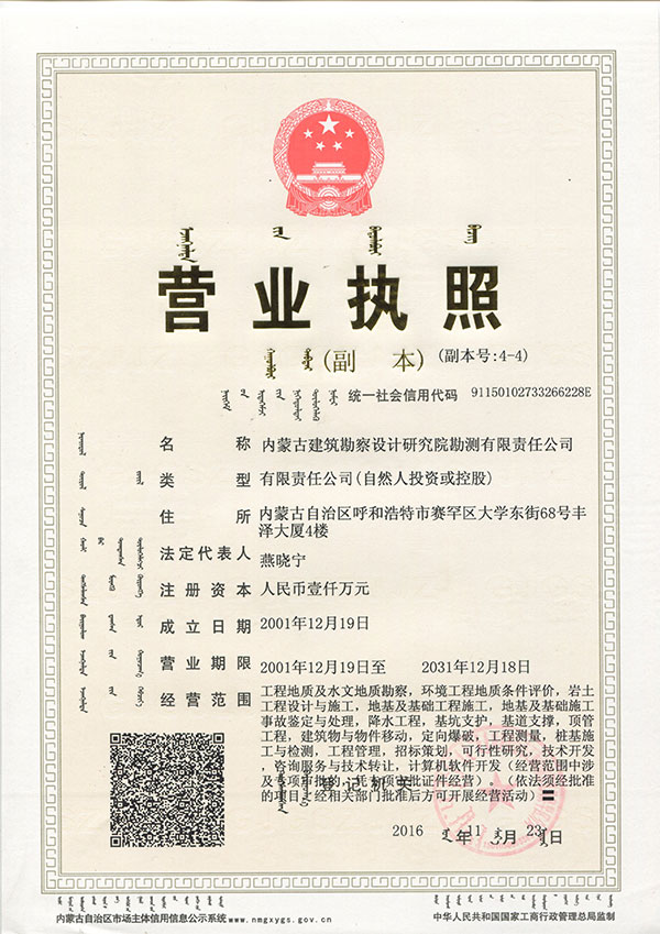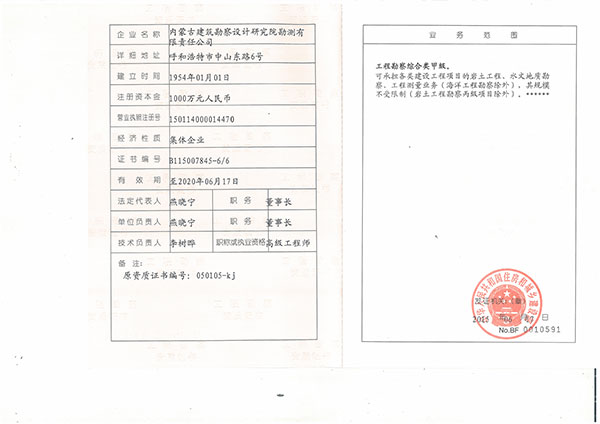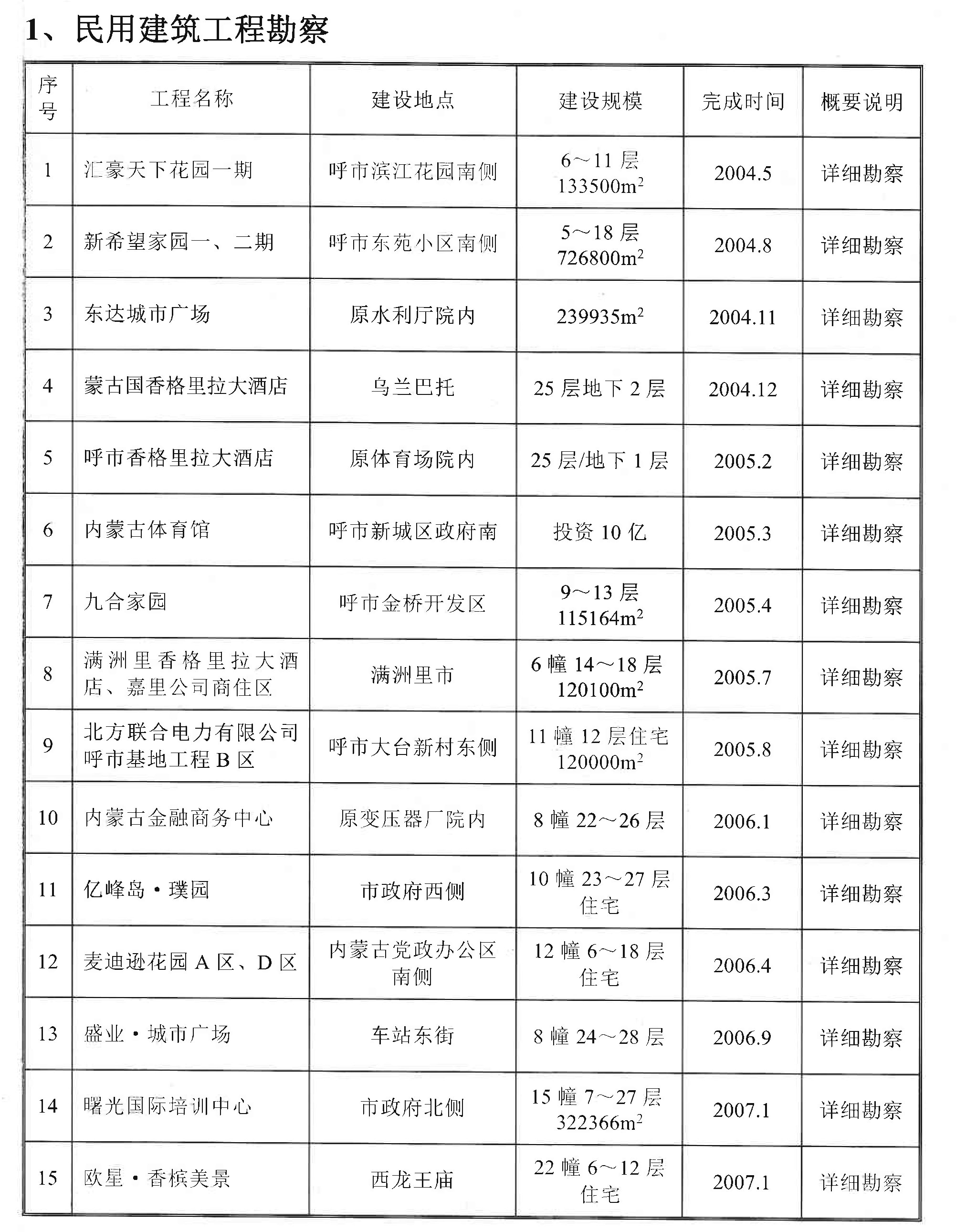 - 內(nèi)蒙古建筑勘察設(shè)計研究院勘測有限責任公司,是全國首家完成 轉(zhuǎn)企建制的省級建筑勘察設(shè)計單位。公司前身為內(nèi)蒙古建筑勘察 設(shè)計研究院勘測分院, 成立于1954年 ,經(jīng)過六十多年的發(fā)展, 現(xiàn)已成為全區(qū)技術(shù)力量雄厚、專業(yè)設(shè)置齊全的集巖土工程勘察 、 設(shè)計、治理、檢測、監(jiān)理、咨詢、水文地質(zhì)勘查、工程測量、科 研為一體的綜合性企業(yè) ... ... [查看詳情]